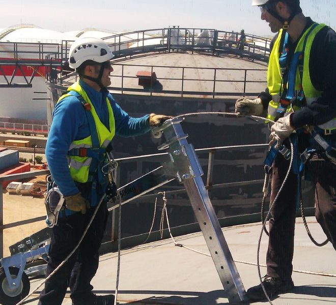La plataforma permite acceder rápidamente a todo el perímetro del tanque para poder revisarlo. El cliente ahorra tiempo y dinero al evitar un andamio perimetral tubular.
